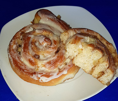 Von der langen Seite her aufrollen und in ca. 2 cm dicke Scheiben schneiden.
