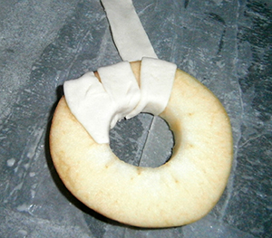 Das Ei verquirlen und die eingewickelten Apfelringe damit bestreichen.