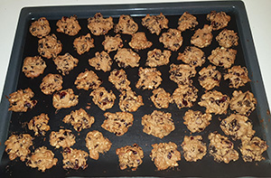 Kleine Häufchen auf ein mit Backpapier belegtes Backblech setzen.