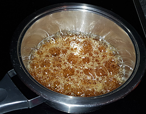 Zucker und Wasser in einem Topf ohne Rühren erhitzen, (dauert ca. gute 10 Minuten),