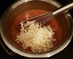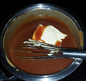 Kurz wieder auf den Herd stellen und rühren, bis alles glatt und cremig ist.