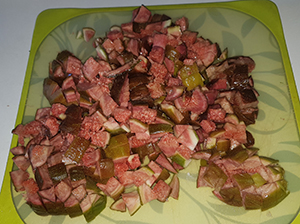 Feigen waschen, Stiel entfernen, in kleine Stücke schneiden ,