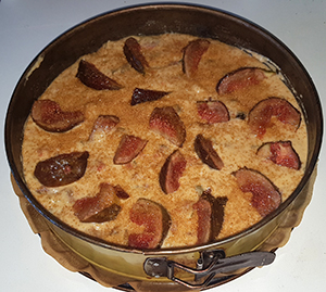 Feigenscheiben auf den Teig legen, etwas braunen Zucker darüberstreuen.