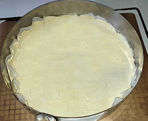 Zubereitung, 26 cm Kreis ausschneiden.-Mehrfach einstechen.