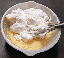 Nun die abgekühlte Vanillecreme mit dem Italienisches Baiser vorsichtig unterheben-kalt stellen.
