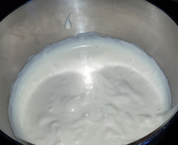 Creme zubereiten,Sahne mit Sahnesteif und Vanillezucker steif schlagen