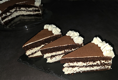 Zweiten Boden drauf → wieder tränken und mit Creme bestreichen.