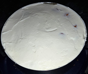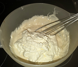 Sobald die Masse zu gelieren beginnt hebt man die Sahne unter.