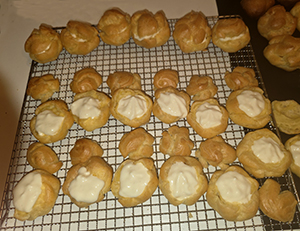 Zutaten: einen Tag vorher die Mini-Windbeutel herstellen, dazu benötigt man: