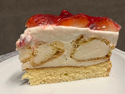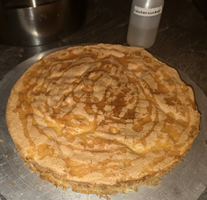 Biskuitboden, den abgekühlten Biskuitboden gut mit Läuterzucker beträufeln, und