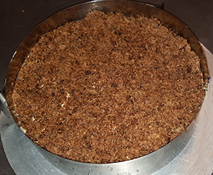 Creme zubereiten, einen Tortenring um den Kirschkuchen stellen.