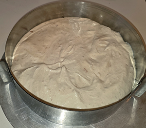 Creme auf den Boden geben, glatt streichen,- mind. 4–5 Stunden kalt stellen (besser über Nacht).