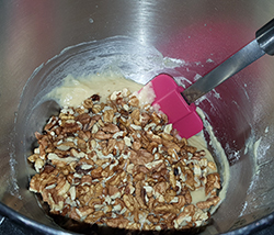Dann die Walnüsse unter den Teig heben,- Förmchen ¾ mit Teig füllen.