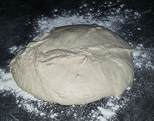 den Teig nochmal auf einer bemehlten Arbeitsfläche kurz durchkneten und in kleine (60-90 g) Stücke abzupfen,