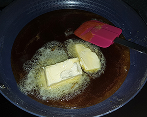 bis er goldbraun ist, Butter einrühren und schmelzen lassen.