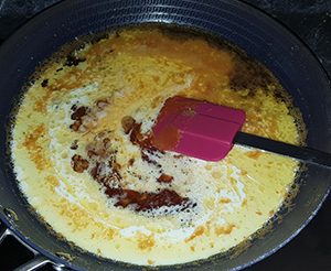 Zuletzt, die warme Sahne einrühren, dabei ständig rühren.