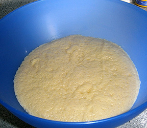 Zugedeckt an einem warmen Ort gehen lassen, bis er sich sichtlich verdoppelt hat.