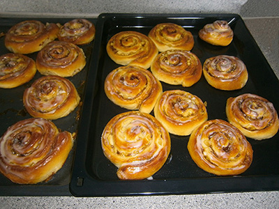 sofort nach dem Backen die Schnecken damit bestreichen.