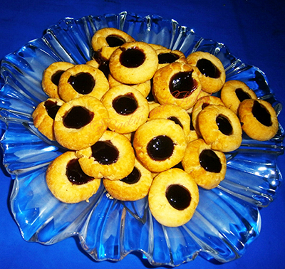Zum Füllen: Johannisbeer-oder Himbeerr-Gelee.