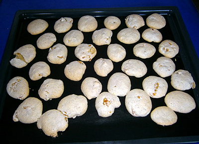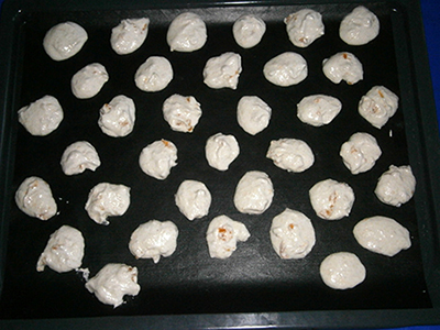 Mit Hilfe von 2 TL Walnuss große Häufchen auf ein mit Backpapier belegtes Backblech setzen.