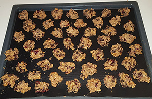 Kleine Häufchen auf ein mit Backpapier belegtes Backblech setzen.