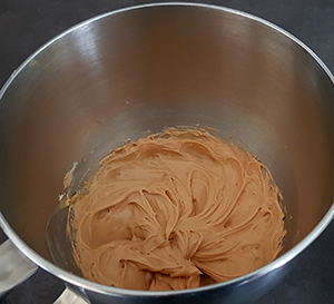 Puderzucker nach und nach einrühren, bis die Masse fluffig ist.