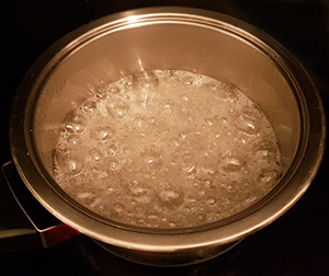 Zucker und Wasser in einem Topf ohne Rühren erhitzen, (dauert ca. gute 10 Minuten),
