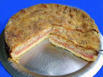 gem. Mandeln zurühren. Quittengelee auf den Teigboden verteilen, Eiermasse darüber verteilen.