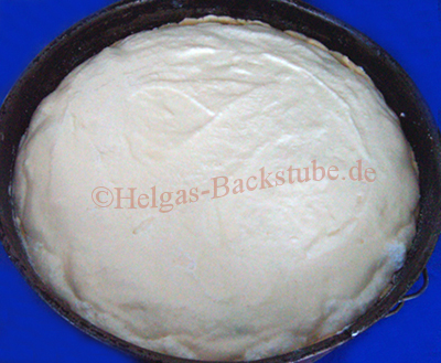 Den Teig in eine mit Fett und Paniermehl bestreute Springform verteilen. (Randhoch = ca.5 cm)