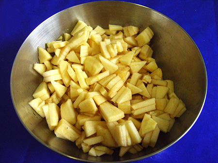Äpfel schälen, entkernen, in kleine Würfel schneiden und mit Zitronensaft vermischen