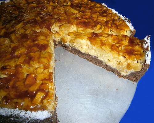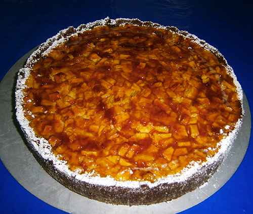 Aprikosen-Konfitüre erhitzen und auf den gebackenen Kuchen streichen. - abkühlen lassen.