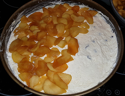 Die Apfelscheiben gleichmäßig darauf verteilen und,