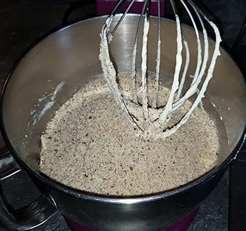 Haselnüsse und Milch dazu rühren.