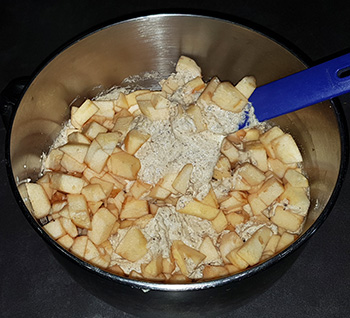 Vorbereitung: Äpfel schälen, Kerngehäuse entfernen und in Würfel schneiden,