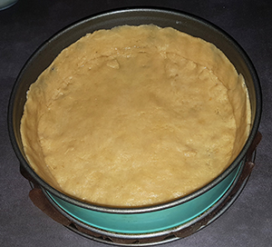 Danach in eine mit Backpapier eingespannte Springform drücken und einen Rand formen.