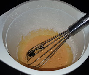 Milch und Sahne aufkochen. Eigelb mit Zucker, Vanilleextrakt mit und Stärke verrühren.