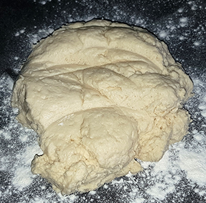 Mehl mit Backpulver sieben und zu einem weichen, glatter Teig kneten.