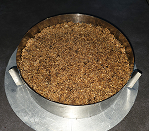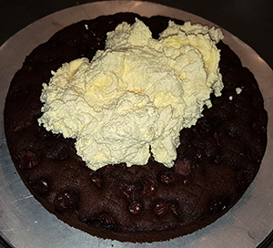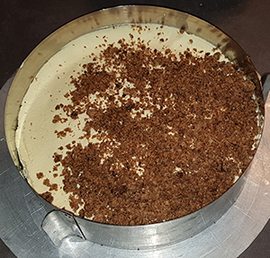 Creme zubereiten, einen Tortenring um den Kirschkuchen stellen.