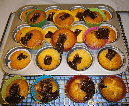 Sofort nach dem Backen Muffins aus dem Muffinblech heraus nehmen und vollkommen abkühlen lassen.