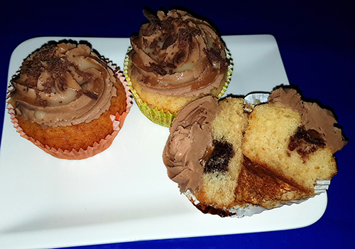 Topping: 120 g zimmerwarme Butter, 200 g Peanutbutter = (Erdnussbutter) 150 g Puderzucker.