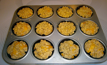 Für die Streusel: 70 g Mehl, 40 kernige Haferflocken,50 g Zucker,