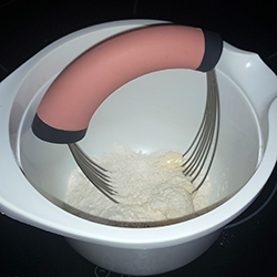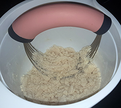Mehl, Zucker und Butter mit einem Pastry Blender oder einer Gabel verkneten,