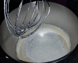 Öl und Milch unterrühren, Kokosfüllung einrühren.