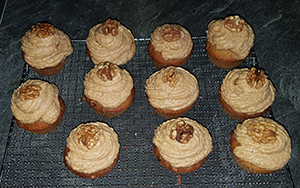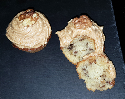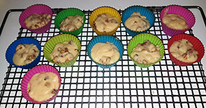 Dann die Walnüsse unter den Teig heben,- Förmchen ¾ mit Teig füllen.