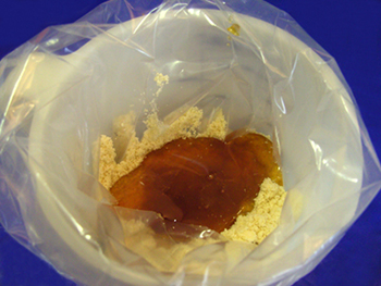 80 g Honig etwas erwärmen mit 1 EL Rosenwasser und ½ TL Bittermandelaroma, oder